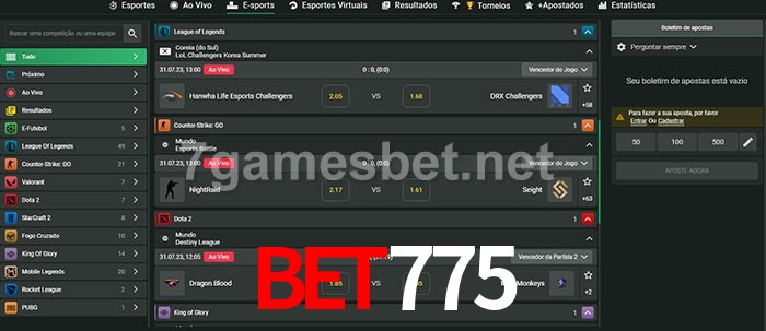 A aposta Bet775 oferece aos jogadores a experiência mais conveniente de apostas em eSports!